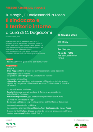 Presentazione del volume di B. Manghi, T. Dealessandri, N. Tosco, "Il sindacato e il territorio intorno", a cura di C. Degiacomi, Edizioni Lavoro, 2023 con la partecipazione degli autori.