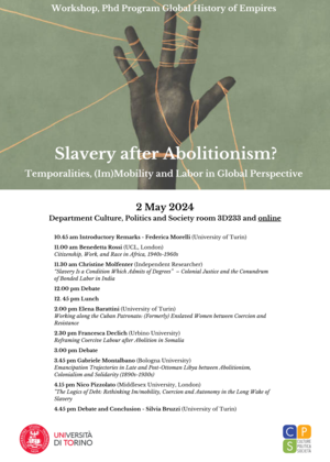 Giornata di studi "Slavery after Abolitionism? Temporalities, (Im)Mobility and Labor in Global Perspective" (Torino, 2 maggio 2024)