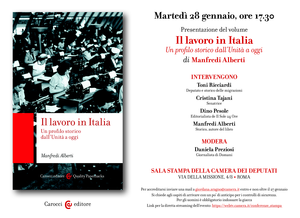 Il 28 gennaio 2025, alle ore 17:30, presso la sala stampa della Camera dei Deputati si terrà la presentazione del libro di Manfredi Alberti, "Il lavoro in Italia. Un profilo storico dall'Unità a oggi".