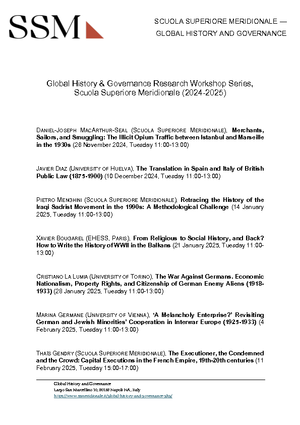 Research Workshop della Scuola Superiore Meridionale "Global History & Governance" (Napoli, 26 novembre 2024 - 20 maggio 2025)