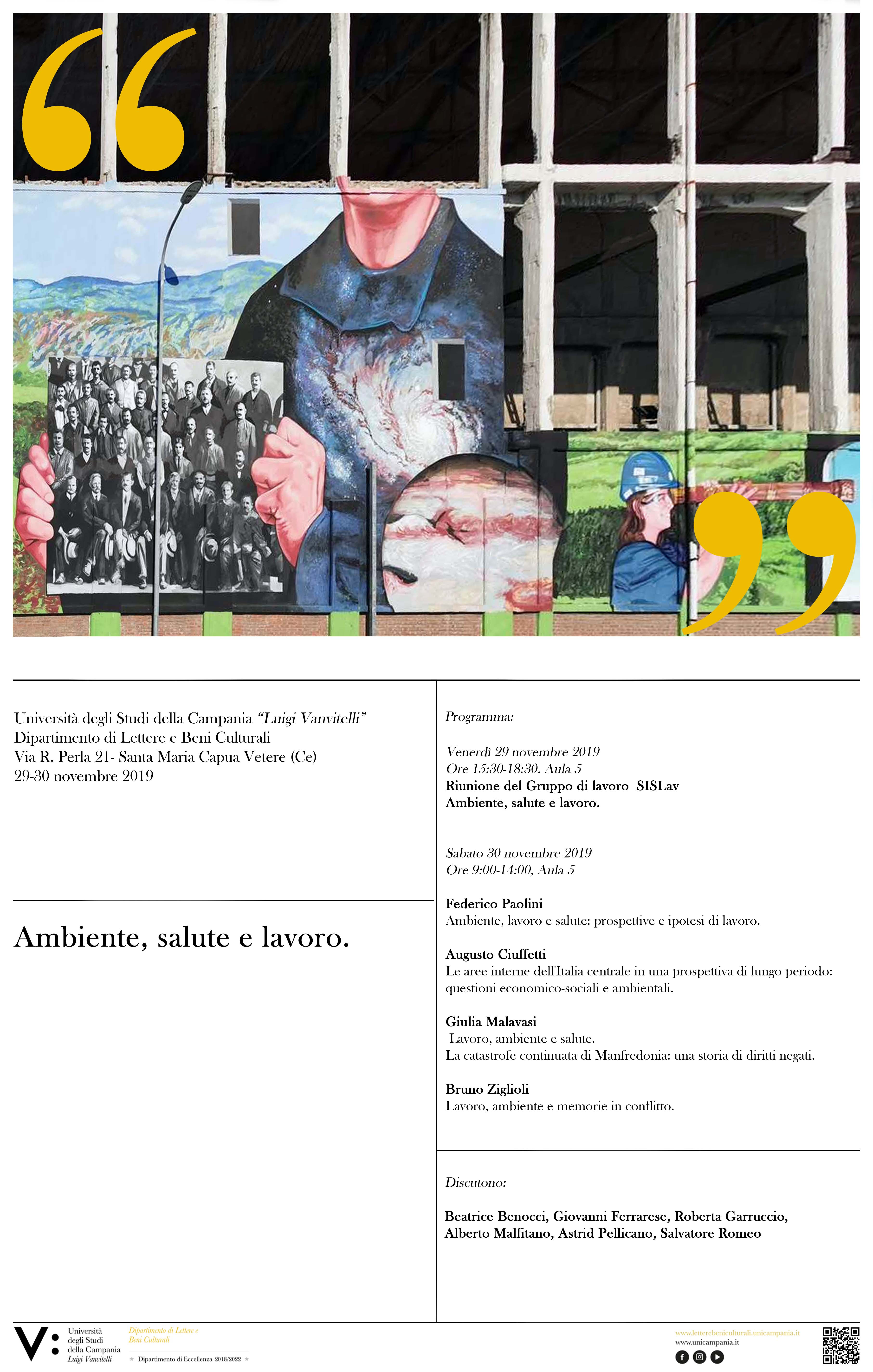 - 29-30 novembre 2019, Università degli Studi della Campania "Luigi Vanvitelli", Santa Maria Capua Vetere (locandina: Ambiente, salute e lavoro)