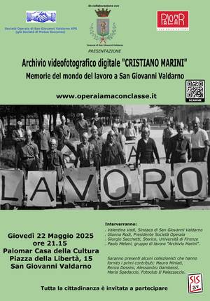 L'iniziativa "Archivio videofotografico digitale 'Cristiano Marini'. Memorie del mondo del lavoro a San Giovanni Valdarno" è promossa dalla Società Operaia di San Giovanni Valdarno, Palomar Casa della Cultura, e con il patrocinio della SISLav.