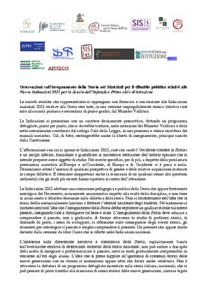 Le società storiche che rappresentiamo si oppongono con fermezza e convinzione alle Indicazioni nazionali 2025 relative alla Storia rese note, in una versione inspiegabilmente monca (relativa cioè solo alla scuola primaria e secondaria di primo grado), dal Ministro Valditara.
