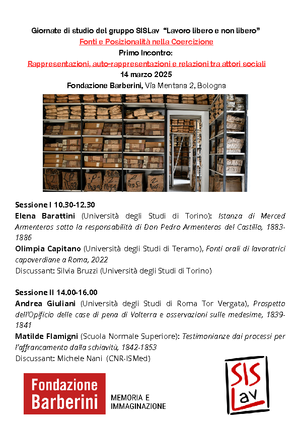 Il gruppo “lavoro libero e non libero” della SISLav invita alle giornate di studio dal titolo “Fonti e posizionalità nella coercizione,” per (ri)tornare sul termine coercizione e interrogare i rapporti di lavoro definiti come coercitivi a partire dall’analisi delle fonti storiche.