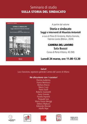 Il seminario di studio sulla storia del sindacato verterà attorno alla discussione del volume "storia e sindacato. Saggi e interventi di Maurizio Antonioli" a cura di Piero Di Girolamo, Mattia Granata e Fabrizio Loreto (Biblion, 2024)