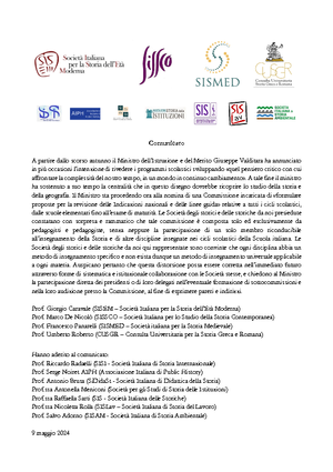 Pubblichiamo il comunicato congiunto delle Società storiche in merito alla nomina della commissione sulla riforma dei programmi scolastici voluta dal Ministro dell'Istruzione e del Merito Giuseppe Valditara.
