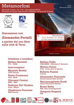 Metamorfosi. I cambiamenti nella società italiana in prospettiva storica indagati attraverso la pratica della storia orale. Discussione con Alessandro Portelli a partire dal suo ultimo libro "Dal rosso al nero", mercoledì 6 marzo alle ore 14:30 presso nell’aula Altana dell’Università di Firenze,...
