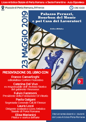Si terrà a Firenze il 23 maggio 2019 alle ore 10, presso il Liceo Artistico Statale di Porta Romana e Sesto Fiorentino, la presentazione del volume di Felice Bifulco, “Palazzo Peruzzi, Bourbon del Monte e poi Casa dei Lavoratori”.