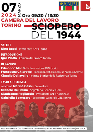 La Fondazione Di Vittorio e l’Anpi nazionale, in collaborazione con la Camera del Lavoro di Torino, la Fondazione Istituto Piemontese Antonio Gramsci e la Fiom nazionale organizzano per il giorno 7 marzo il convegno dal titolo “Sciopero del 1944”.