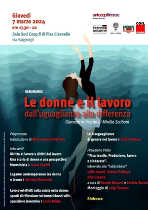 Giovedì 7 marzo, a partire dalle ore 17:30, nella sala soci Coop.fi di Cisanello (via Valgimigli, Pisa), si terrà un seminario in ricordo di Mirella Scriboni dal titolo: “Le donne e il lavoro: dall’uguaglianza alla differenza”.