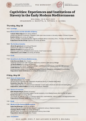 Workshop "Captivities. Experiences and Institutions of Slavery in the Early Modern Mediterranean" (Bologna, 18 - 19 maggio 2023)