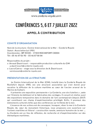 Il Centre International de la Mer – Corderie Royale organizza un convegno di tre giorni ceh si svolgerà dal 5, 6 e 7 luglio.