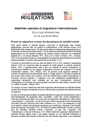 Convegno "Mobilités sociales et migrations internationales" (Parigi, 13-14 giugno 2019)