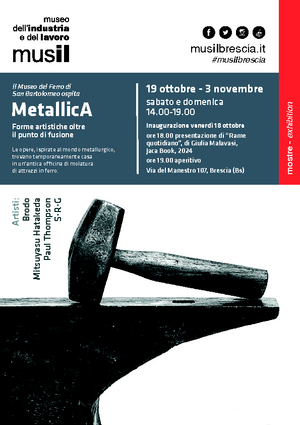 Il Museo del Ferro di San Bartolomeo (in Via del Manestro 107 a Brescia) ospita la mostra "MetallicA - Forme artistiche oltre il punto di fusione". Espongono Brodo, Mitsuyasu Hatakeda, Paul Thompson, S•R•G. Le opere, ispirate al mondo metallurgico, trovano temporaneamente casa in un’antica officina...