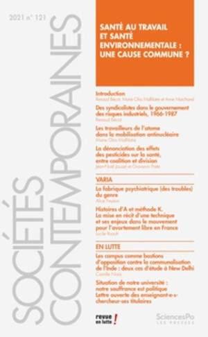 Segnaliamo il nuovo numero della rivista «Socíetés Contemporaines», pubblicato da la Presses de Sciences Po e concentrato su "Santé au travail et santé environnementale: une cause commune?".