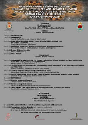Seminario "Paesaggi Sabini. I segni del lavoro" (Poggio Mirteto, 13 - 14 settembre 2019)