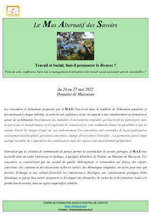 Convegno “Travail et social, faut-il prononcer le divorce? Perte de sens, souffrance, burn out, le management d’entreprise et le travail social associatif sont-ils conciliables?” (La Garde, 24 – 27 maggio 2022)